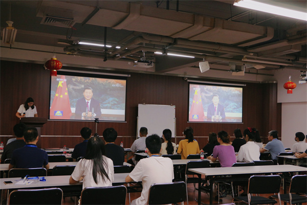 會(huì)上,丁紅梅帶領(lǐng)黨員一起觀看習(xí)總書(shū)記2022年5月18日在慶祝中國(guó)國(guó)際貿(mào)易促進(jìn)委員會(huì)建會(huì)70周年大會(huì)暨全球貿(mào)易投資促進(jìn)峰會(huì)講話。