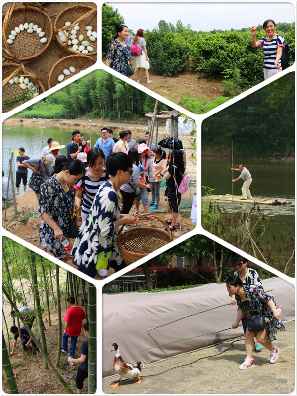 到達山莊后,全體進行一個好玩的游戲——撿鴨蛋。山莊里,60個鴨蛋早已被掩藏在了竹林間、茶園里、果樹旁,靜靜地等待著遠道而來的朋友。檢鴨蛋游戲分為4組,每組4人,在20分鐘內撿到鴨蛋最多的組獲勝。還記得,第一個撿到鴨蛋的同事那興奮的歡呼聲;還記得大家拎著籃子、低著頭小心翼翼地搜索著每一寸土地,生怕錯過一個鴨蛋;還記得大家撿完鴨蛋后,你看看我的籃子,我看看你的籃子,然后趁別人稍不注意,輕輕地拿起別人籃子里的鴨蛋試圖放回自己的籃子,結果一個不經意的轉身,被發現,大家相視而笑……這場比賽,結果并不重要,重要的是比賽過程中的那份快樂和心與心的靠近!