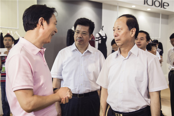 9 月 9 日, 服裝節(jié)開幕式結(jié)束后, 江蘇省省長石泰峰、 副省長馬秋林, 在省、 市相關(guān)領導的陪同下參觀了我司展廳, 與集團董事長康宜華親切交流, 并對我司發(fā)展給予了肯定與贊賞。