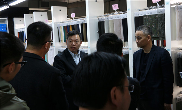 在孫總等相關(guān)人員的陪同下,周總一行先后參觀了我們的時尚創(chuàng)意園、模版中心、技術(shù)中心和檢測中心。參觀過程中,周總不時停留詢問,對華瑞在面料開發(fā)、生產(chǎn)效率提升的研究、產(chǎn)品開發(fā)和產(chǎn)品質(zhì)量控制等方面走在同行前列予以稱贊。