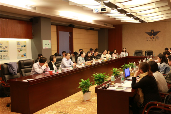 交流會結束后,由人力資源部顧總帶隊,師生們實地參觀了華瑞集團江海文化藝術館、市場開發中心、面輔料開發中心和技術開發中心,相應的部門負責人為大家進行了詳細的講解。同學們對于面料品類、服裝設計、生產流程等充滿好奇,參觀過程中不斷的詢問,對外貿企業生產經營有了一定的認知。