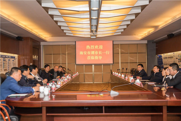 2021 年10月24日,海安市委副書記、市長譚真,副市長周小軍,市政協副主席、工商聯主席蔡祝平一行來寧考察,看望南京市海安商會會員代表,走訪了我司等企業,并帶領海安籍在寧鄉賢代表共 同參觀了曉莊行知園(陶行知紀念館)。海安市政府辦公室主任楊國來,市委統戰部常務副部長、市工商聯黨組書記黃婧婧,南京市海安商會會長、華瑞時尚集團創始人康宜華等參加活動。