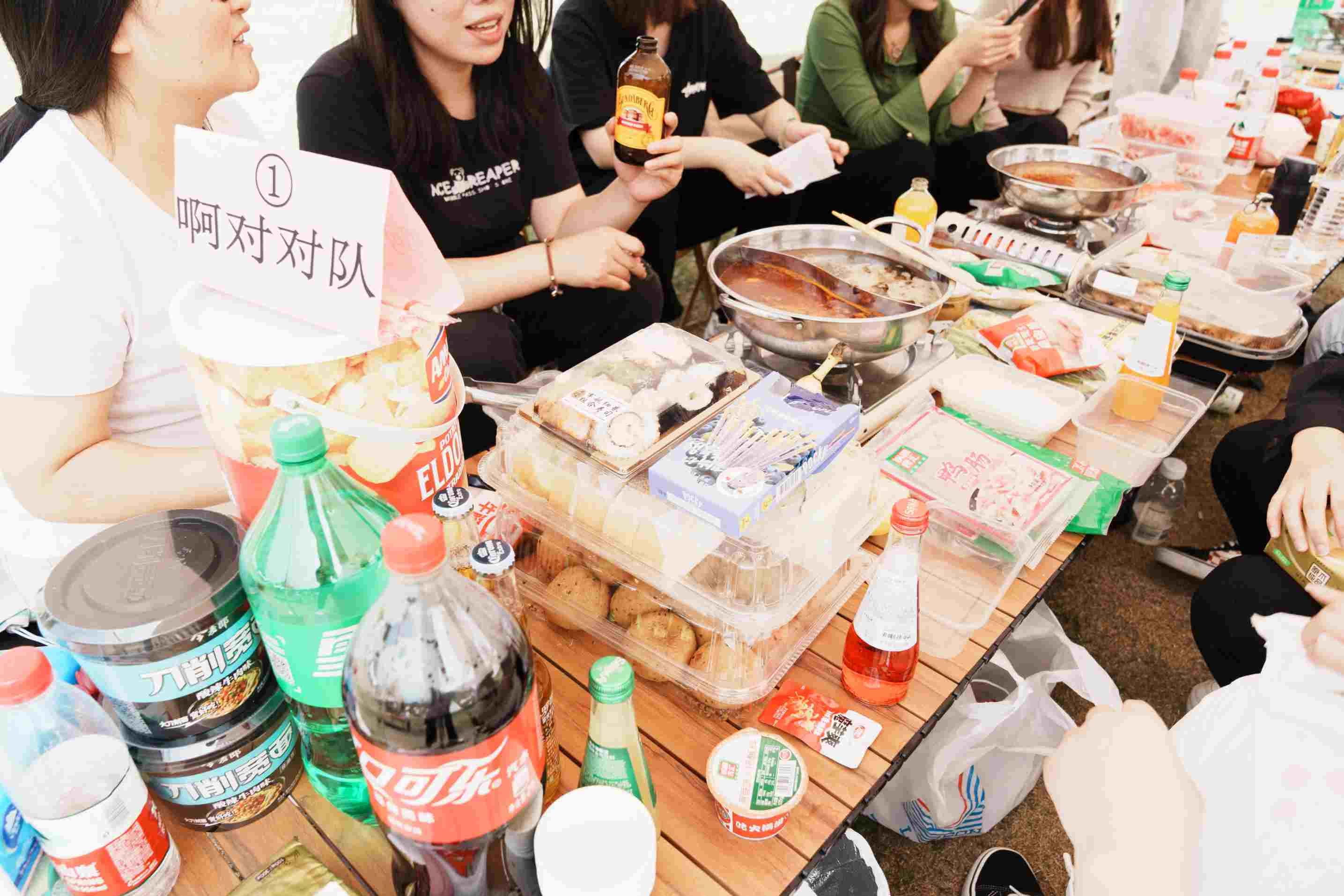 這個營地帳篷里冒著火鍋的熱氣