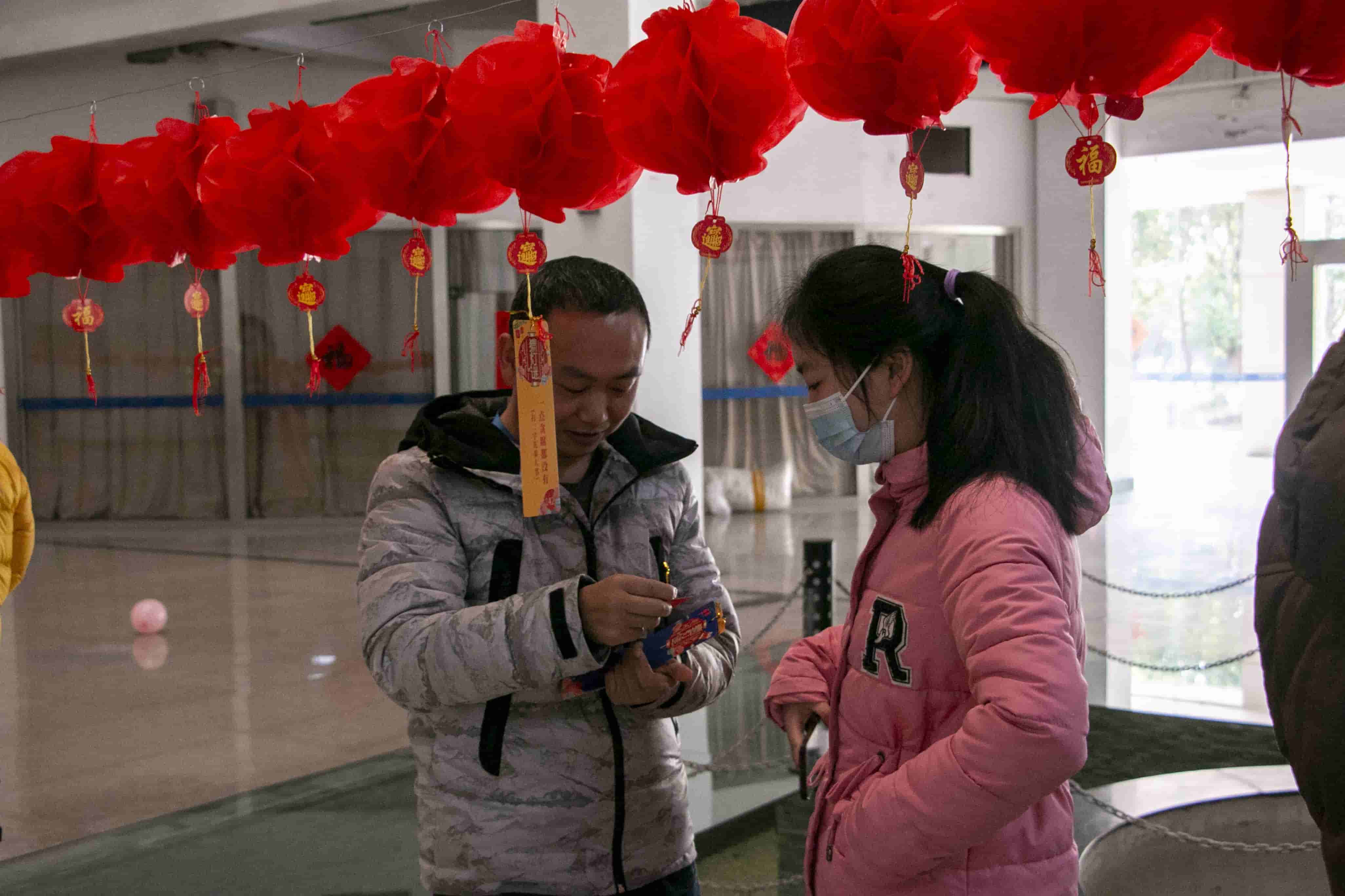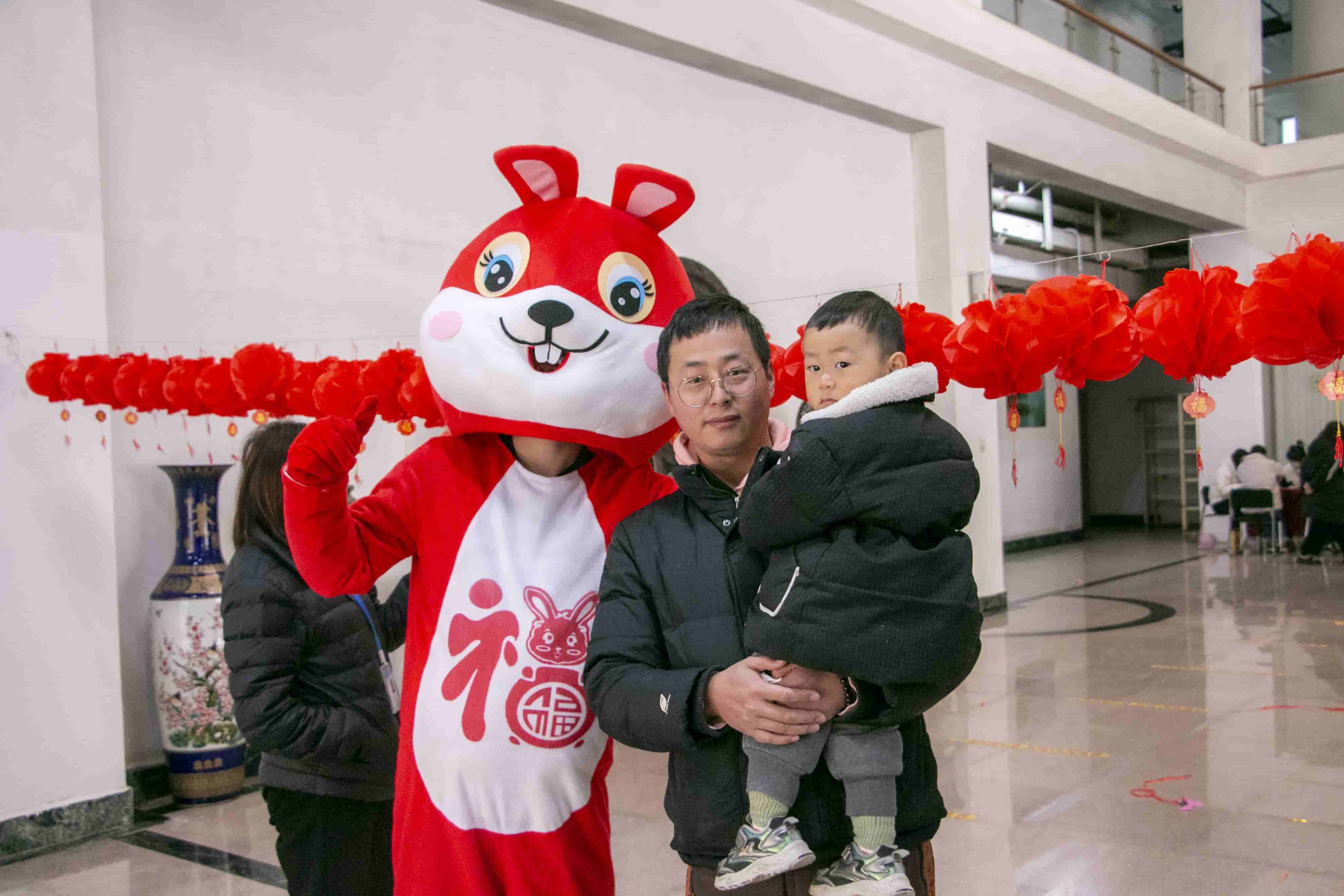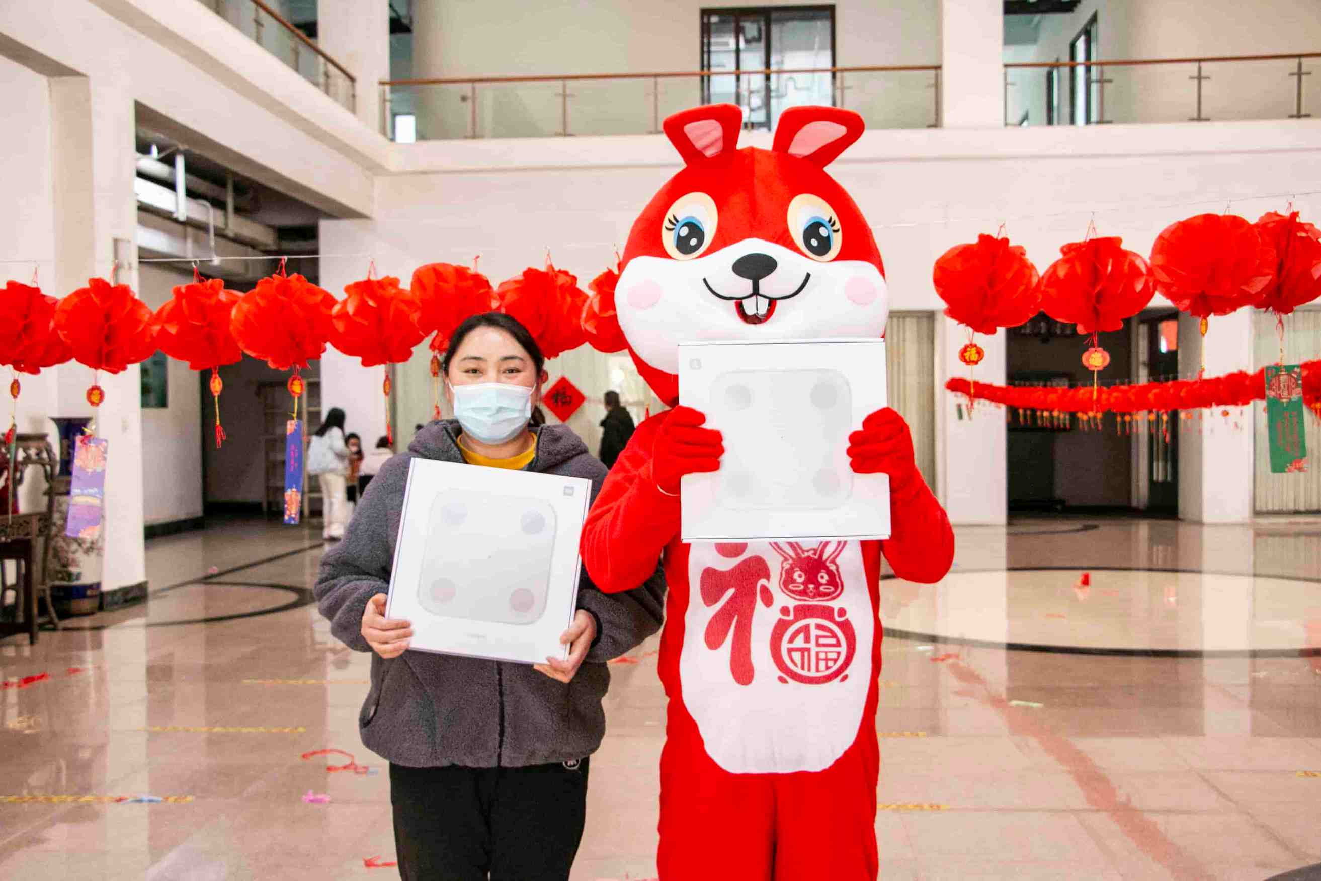 鏡頭環(huán)顧四周,大廳掛滿了紅彤彤的燈籠,燈籠下懸掛著一條條妙趣橫生的燈謎,吸引不少人駐足思考,大家或三五成群結(jié)伴猜謎,或低頭沉思,“沉浸式”感受傳統(tǒng)民俗,體驗(yàn)文化的藝術(shù)魅力,不一會(huì)兒,數(shù)百條燈謎盡數(shù)被破解。謎題答出者即可前往抽獎(jiǎng)臺(tái)核對(duì)謎底,答案正確的小伙伴可以通過(guò)抽獎(jiǎng)獲得不一樣的驚喜獎(jiǎng)品。“看!是玉兔!”一個(gè)小朋友驚呼,身穿“玉兔”玩偶服的工作人員也隨之熱情互動(dòng),活動(dòng)現(xiàn)場(chǎng)處處歡歌笑語(yǔ),洋溢著快樂(lè)祥和的喜慶氛圍。