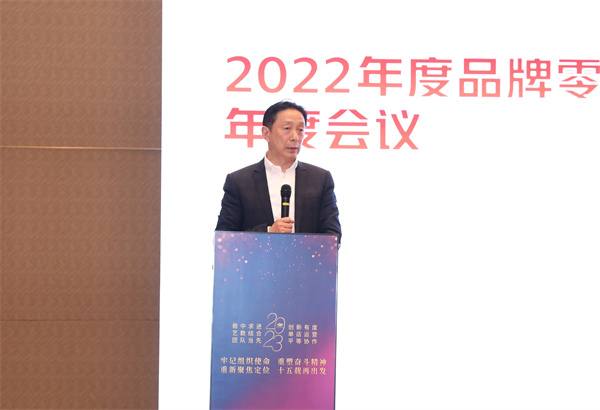第三篇章:華瑞時尚集團(tuán)董事長孫家軍先生發(fā)言。孫總首先對2022年度品牌零售事業(yè)部全體同仁的努力工作及疫情時期艱苦奮斗的工作作風(fēng)進(jìn)行了肯定和贊賞。同時指出無論環(huán)境如何變化,品牌整體工作圍繞以客戶需求為導(dǎo)向的宗旨不可改變,持續(xù)提升客戶的消費(fèi)體驗(yàn)感不能改變。未來,客戶消費(fèi)體驗(yàn)感非常重要,對于一線的商品運(yùn)營、一線的店鋪操作也非常關(guān)鍵,希望品牌零售事業(yè)部同仁堅(jiān)持提升消費(fèi)者的體驗(yàn)感,助力公司品牌長久持續(xù)的發(fā)展。