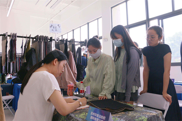 多家南京男女裝企業的設計師、面料采購人員同盛澤面料企業,在華瑞時尚集團專場互換名片,進行交流對接。“色卡能給我一份嗎”“這個布料什么價格”“加個微信吧,樣品寄給我”……對接會現場,大家交流意愿強烈,互動不斷,部分品牌已與面料企業達成了初步合作意向。